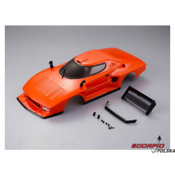 Pomalowana karoseria Lancia Stratos w kolorze pomarańczowym z akcesoriami.Pomalowana karoseria Lancia Stratos w kolorze pomarańczowym. Zestaw zawiera wiele detali - zestaw chromowanych części (szkła lusterek oraz reflektory, ...), zestaw czarnych plastikowych elementów (lusterka, wycieraczki, ...).