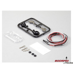 Kompletny zestaw oświetlenia dedykowany do modeli E-Revo 1/16 i E-Revo 1/16 VXL. W zestawie: Zderzak przód z otworami na diody; Zderzak tył z otworami na diody; Diody LED białe 4szt.; Diody LED czerwone 4szt.; Gotowa wiązka elektryczna
